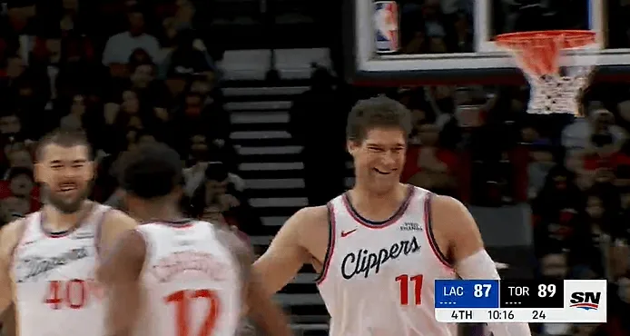 比赛第四节,快船使出双塔战术,大洛三分命中后快船末节开局打出8-0打停猛龙。